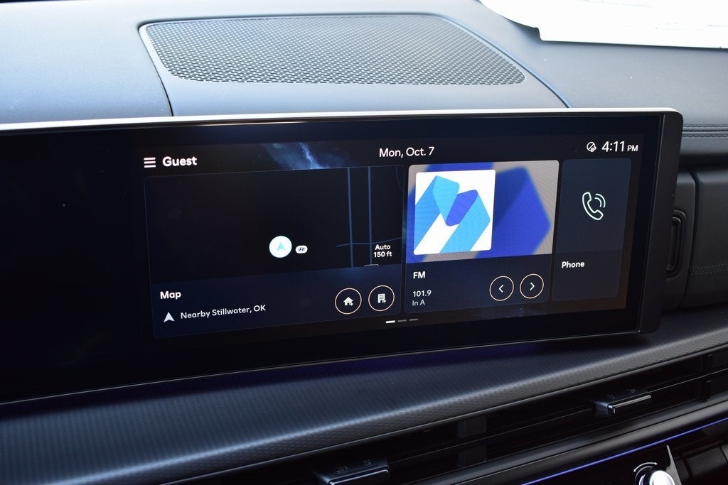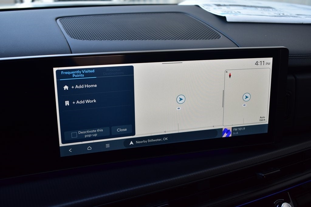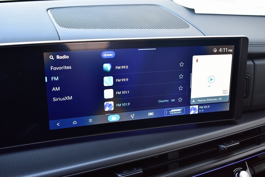 - Radio: AM/FM/HD Bose Premium Audio System -inc: 12 speakers including subwoofer, external amplifier, 12.3" wide touchscreen, Apple CarPlay and Android Auto, Bluetooth® hands-free w/wireless audio streaming, dynamic voice recognition, USB connectivity, SiriusXM, Blue Link+ connected car system, navigation system including traffic flow w/incident data via HD Radio (HERE) and rear seat quiet mode