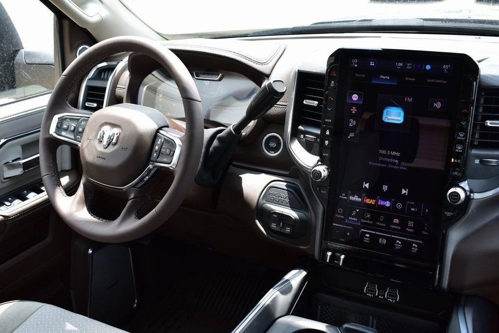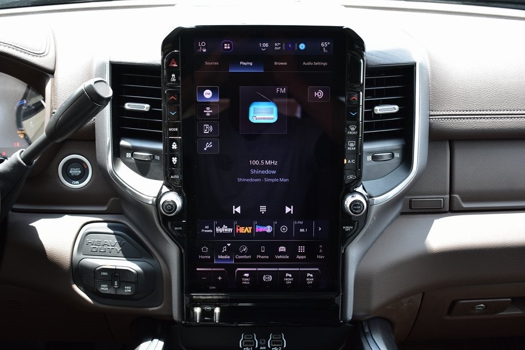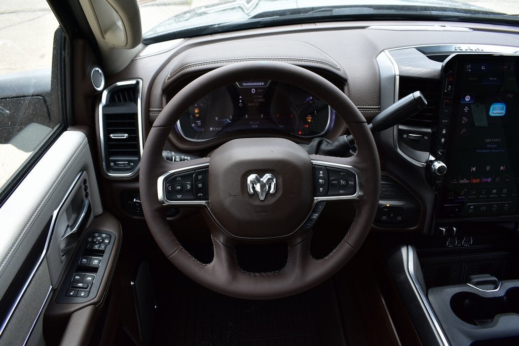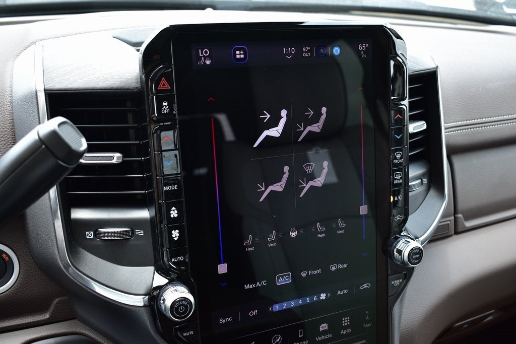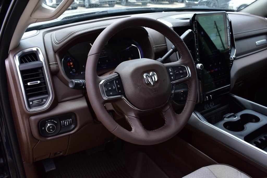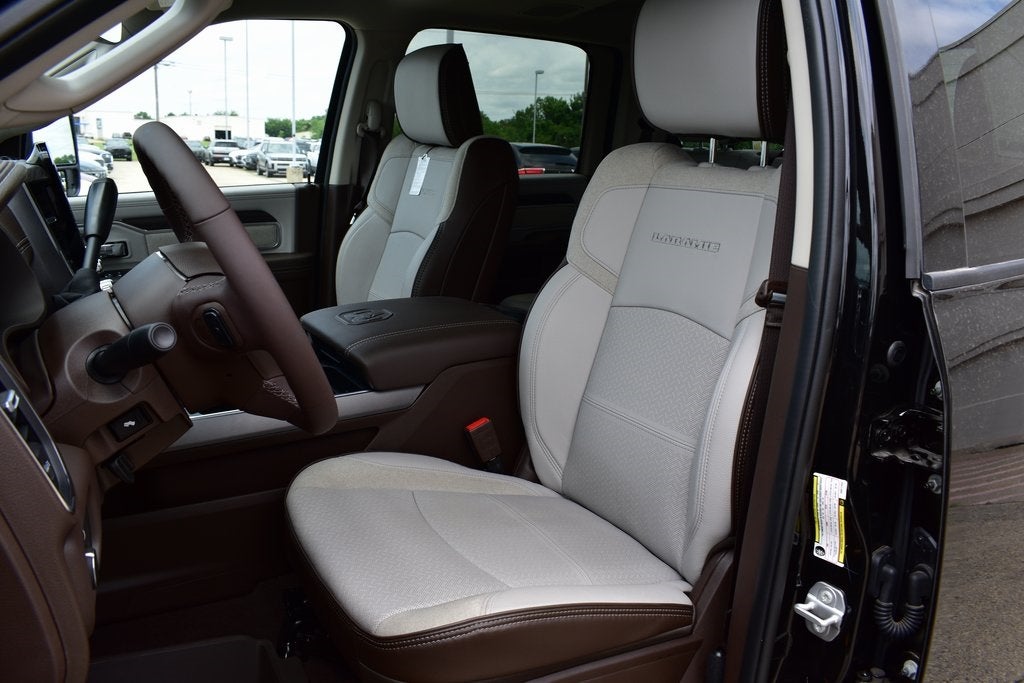 #1 Seat Foam Cushion, 115V Auxiliary Rear Power Outlet, 14.4 Touchscreen Display, 17 Speaker harman/kardon Premium Sound, 2 Way Rear Headrest Seat, 2nd Row In Floor Storage Bins, 3.42 Axle Ratio, 4 Way Front Headrests, 4G LTE Wi-Fi Hot Spot, Alexa Built-In, Android Auto/Apple Car Play Navigation, Anti-Spin Differential Rear Axle, Apple CarPlay/Android Auto, Auto Adjust In Reverse Exterior Mirrors, Auto Dim Exterior Mirror, Auto High Beam Headlamp Control, Auto Power-Folding Mirrors, Auto-Dimming Exterior Passenger Mirror, Auto-dimming Rear-View mirror, Automatic temperature control, Bucket Seats, Chrome Exterior Mirrors, Connected Travel & Traffic Services, Connectivity - US/Canada, CTR Stop Lamp w/Cargo View Camera, Disassociated Touchscreen Display, Dual 730 Amp Maintenance Free Batteries, Dual Wireless Charging Pad, Emergency Vehicle Alert System (EVAS), Exterior Mirrors Courtesy Lamps, Exterior Mirrors w/Heating Element, Exterior Mirrors w/Memory, Exterior Mirrors w/Supplemental Signals, Foam Bottle Insert (Door Trim Panel), Folding Flat Load Floor Storage, Forward & Reverse Utility Lights, Front dual zone A/C, Front fog lights, Front Seat Back Map Pockets, Full Length Upgraded Floor Console, Garage door transmitter, Global Telematics Box Module (TBM), GPS Antenna Input, HD Radio, Heated Front Seats, Heated Second Row Seats, Heated Steering Wheel, High Back Seats, Integrated Voice Command w/Bluetooth®, Laramie Level 2 Equipment Group, Leather Trimmed Bucket Seats, Mirror Running Lights, MOPAR Front & Rear Rubber Floor Mats, Navigation System, Off-Road Info Pages, ParkView Rear Back-Up Camera, Power 2-Way Driver Lumbar Adjust, Power 2-Way Passenger Lumbar Adjust, Power Adjust 8-Way Driver Seat, Power Adjust 8-Way Front Passenger Seat, Power Adjust Mirrors, Power Adjustable Convex Aux Mirrors, Power Adjustable Pedals w/Memory, Power Deployable Running Boards, Power driver seat, Power Heated Fold Telescopic Mirrors w/Memory, Power Telescoping Mirrors, Quick Order Package 24H Laramie, Radio: Uconnect 5 Nav w/14.4 Display, Rain Sensitive Windshield Wipers, Rear 60/40 Folding Seat, Remote Tailgate Release, Selectable Tire Fill Alert, SiriusXM Radio Service, SiriusXM w/360L, Steering wheel mounted audio controls, Surround View Camera System, Towing Technology Group, Trailer Reverse Guidance, Trailer Tire Pressure Monitoring System, Trailer Tow Pages, Wheels: 18 x 8.0 Diam Cut Alum w/Blk Pt Pock.