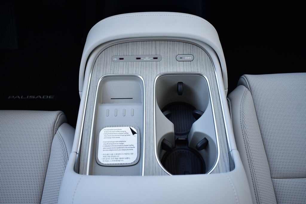 The 2026 Hyundai Palisade Calligraphy is the most luxurious trim, featuring premium Nappa leather seats with heating, ventilation, and massage. It includes a 14-speaker Bose sound system and a dual-pane sunroof. The redesigned exterior boasts a distinctive illuminated grille light bar, and advanced technology includes a built-in dash cam, digital rearview mirror, and a UVC-sanitizing light in the center console. The powerful 3.5L V6 engine and HTRAC all-wheel drive are standard on many models.