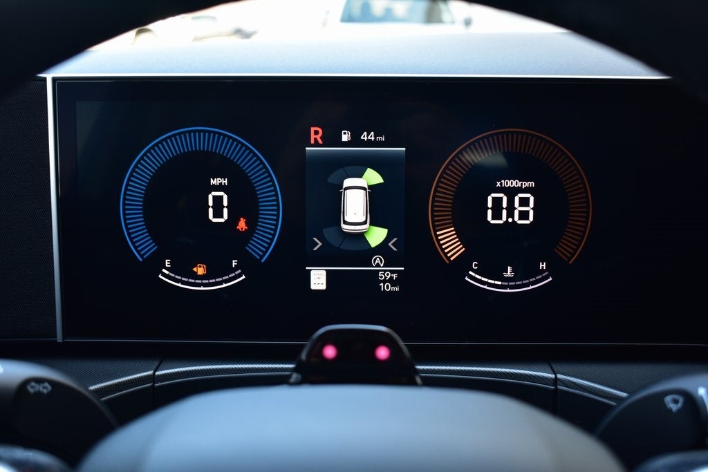 - Radio: AM/FM/HD Display Audio -inc: 6 speakers, 12.3" wide touchscreen display, Apple CarPlay, Android Auto, Bluetooth® hands-free w/wireless audio streaming, dynamic voice recognition, USB connectivity, SiriusXM, Blue Link+ connected car system, over-the-air updating capability, navigation system including traffic flow w/incident data via HD Radio (HERE) and rear seat quiet mode