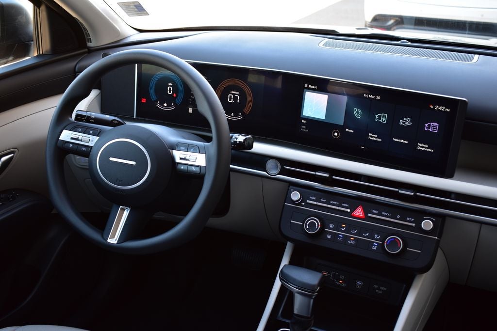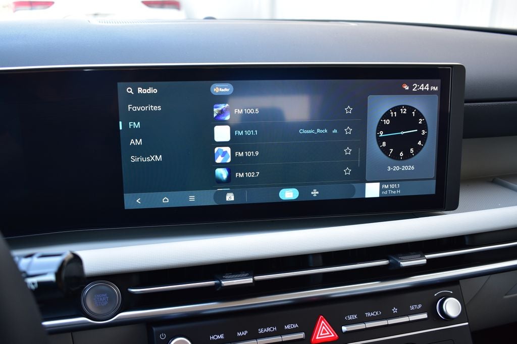 - Radio: AM/FM/HD Audio System -inc: 12.3" color touchscreen display, 6 speakers, SiriusXM satellite radio system (3-month trial subscription), wireless Apple CarPlay and Android Auto integration, controller OTA update capability, Blue Link connected car system and USB connectivity