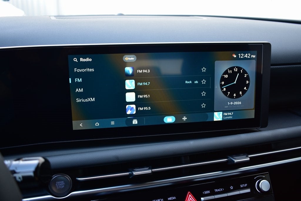 - Radio: AM/FM/HD Audio System -inc: 12.3" color touchscreen display, 6 speakers, SiriusXM satellite radio system (3-month trial subscription), wireless Apple CarPlay and Android Auto integration, controller OTA update capability, Blue Link connected car system and USB connectivity