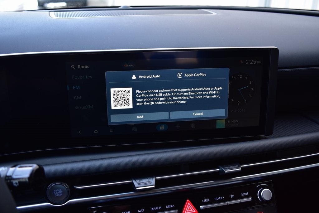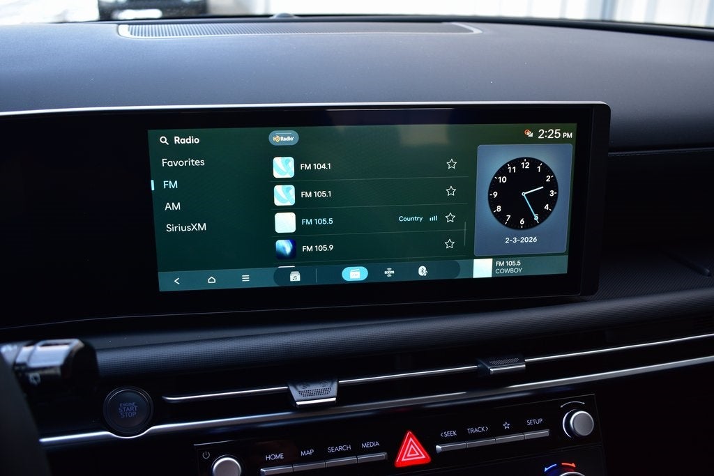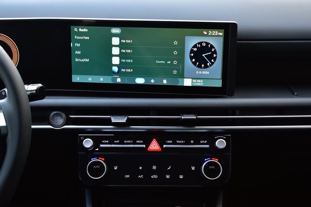 - Radio: AM/FM/HD Audio System -inc: 12.3" color touchscreen display, 6 speakers, SiriusXM satellite radio system (3-month trial subscription), wireless Apple CarPlay and Android Auto integration, controller OTA update capability, Blue Link connected car system and USB connectivity