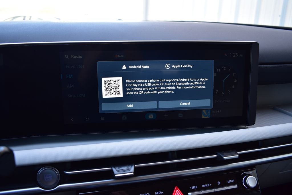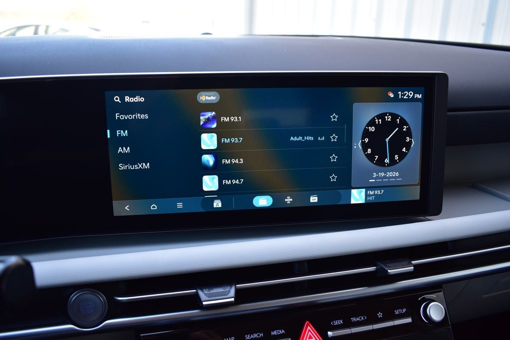 - Radio: AM/FM/HD Audio System -inc: 12.3" color touchscreen display, 6 speakers, SiriusXM satellite radio system (3-month trial subscription), wireless Apple CarPlay and Android Auto integration, controller OTA update capability, Blue Link connected car system and USB connectivity