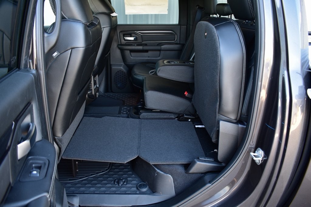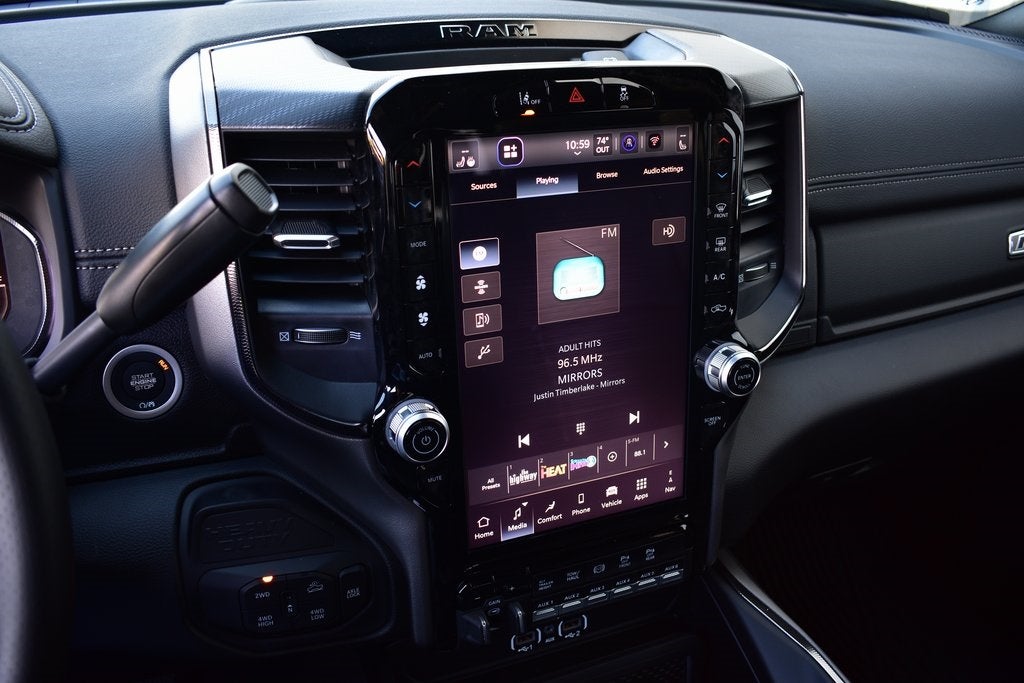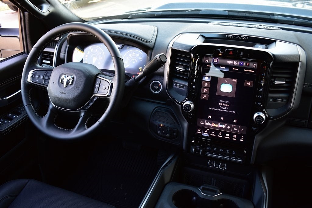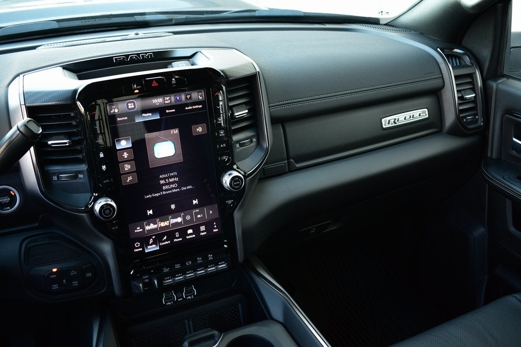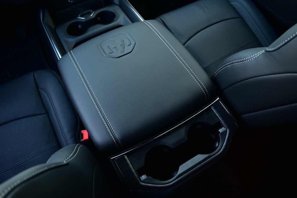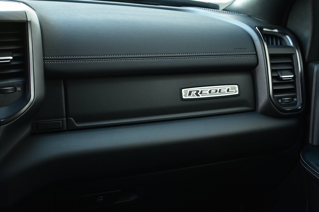 115V Auxiliary Rear Power Outlet, 3.42 Axle Ratio, 4 Adjustable Cargo Tie-Down Hooks, Active Lane Management System, Adaptive Steering System, Adjustable pedals, Android Auto/Apple Car Play Navigation, Apple CarPlay/Android Auto, Auto Dim Exterior Mirror, Auto High Beam Headlamp Control, Auto Level Rear Air Suspension, Auto Power-Folding Mirrors, Auto-Dimming Exterior Passenger Mirror, Auto-dimming Rear-View mirror, Automatic temperature control, Bed Convenience Group, Black Exterior Mirrors, Body Color Door Handles, Dash Pass Thru Wire Circuits, Drowsy Driver Detection, Dual Wireless Charging Pad, Emergency Vehicle Alert System (EVAS), Exterior Mirrors Courtesy Lamps, Folding Flat Load Floor Storage, Front Door Locks 2-Door Passive Entry, Front fog lights, Front Seat Back Map Pockets, Full Length Upgraded Floor Console, Heated Front Seats, Heated Second Row Seats, Heated Steering Wheel, High Back Seats, Leather Trimmed Bucket Seats, LED Bed Lighting, LED Interior Lighting, Mirror Running Lights, Navigation System, Overhead LED Lamps, ParkView Rear Back-Up Camera, Power 2-Way Driver Lumbar Adjust, Power 2-Way Passenger Lumbar Adjust, Power Adjust 8-Way Driver Seat, Power Adjust 8-Way Front Passenger Seat, Power Adjust Mirrors, Power Telescoping Mirrors, Power-Adjustable Convex Aux Mirrors, Premium Overhead Console, Quick Order Package 24R Rebel, Radio/Driver Seat/Mirrors/Pedals Memory, Rain Sensitive Windshield Wipers, RamBox Cargo Management System, Rear 60/40 Folding Seat, Rebel Level 1 Equipment Group, Safety Group, Sport Performance Hood, Traffic Sign Recognition, Truck Bed Cargo Divider, Universal Garage Door Opener, Upfitter Electronic Module (VSIM), Vendor Painted Cargo Box, Vendor Painted Cargo Box Tracking, Ventilated Front Seats, Wheels: 20 x 8.0 Black Diamond Cut Aluminum.